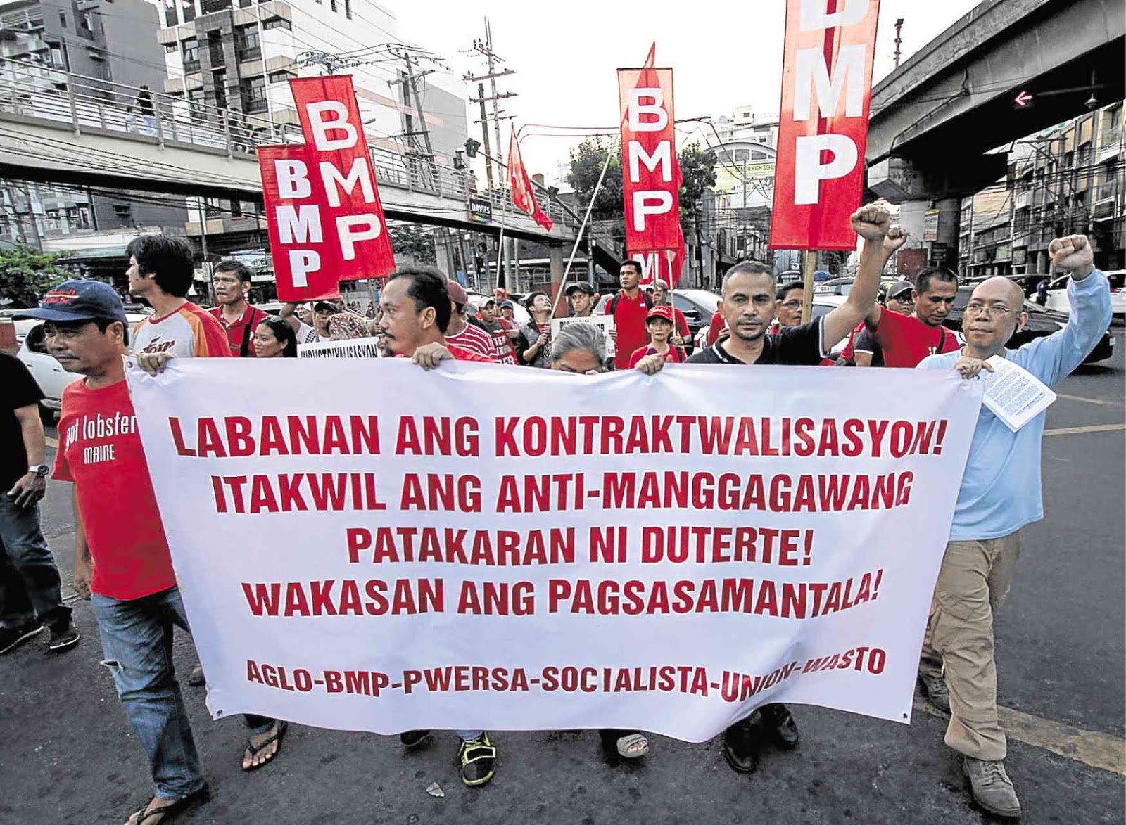 Kaya nga ang hiningi ng mga labor groups ay Executive Order para sa pagbabawal ng labor contracting dahil winasak nito ang mga karapatan ng manggagawa, kasama ang karapatan sa pag-uunyon. Dahil sa kontraktwalisasyon, milyon-milyon ang mababa ang sahod at takot na magreklamo dahil kahit anong oras ay maaring i-terminate ang kontrata sa trabaho.